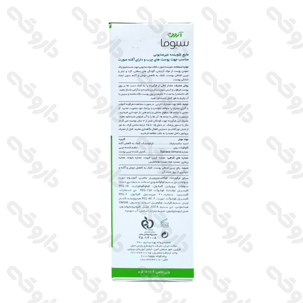 خرید و قیمت مایع شوینده غیر صابونی پوست چرب و آکنهای صورت سبوما آردن ۱۵۰ گرم از داروخانه آنلاین داروقه