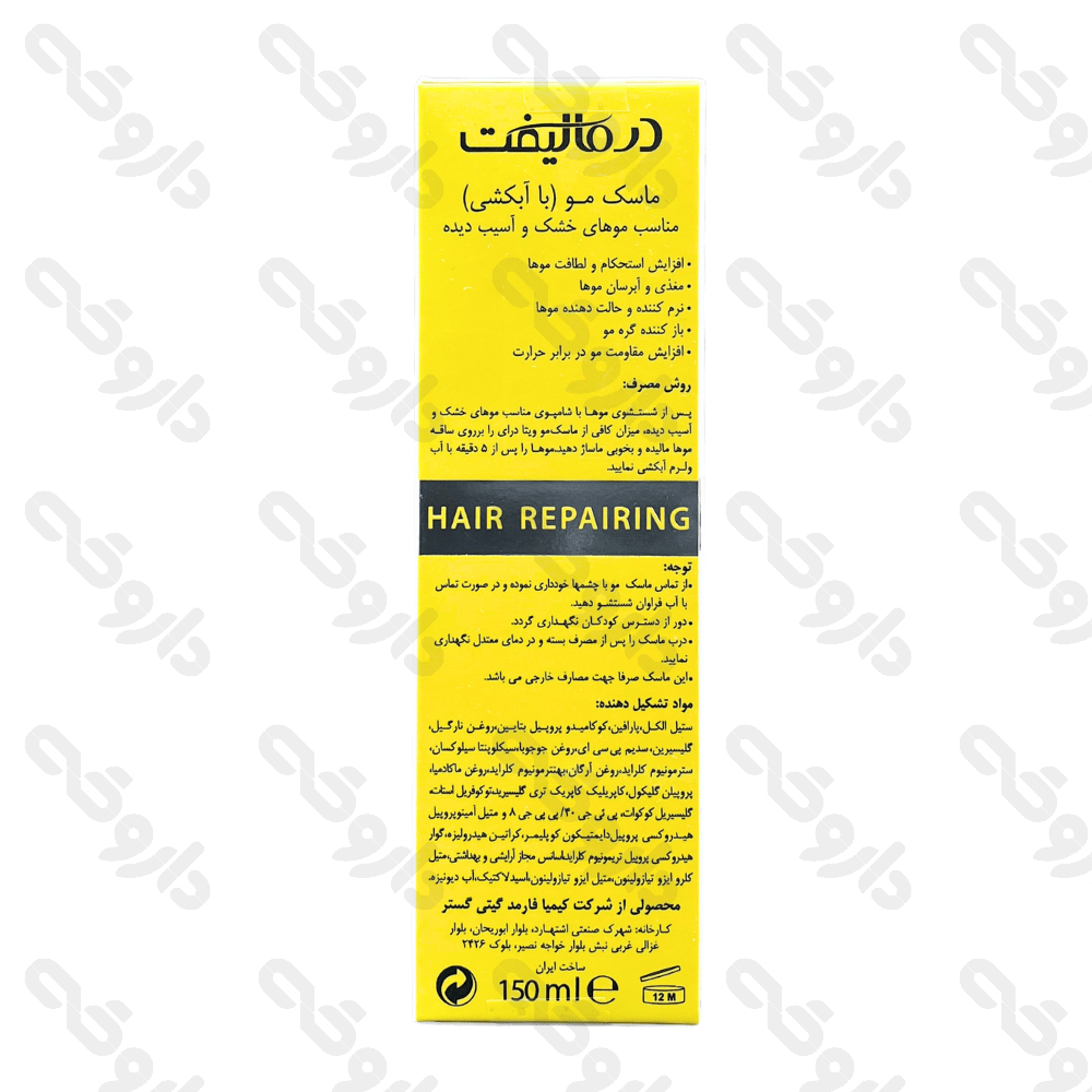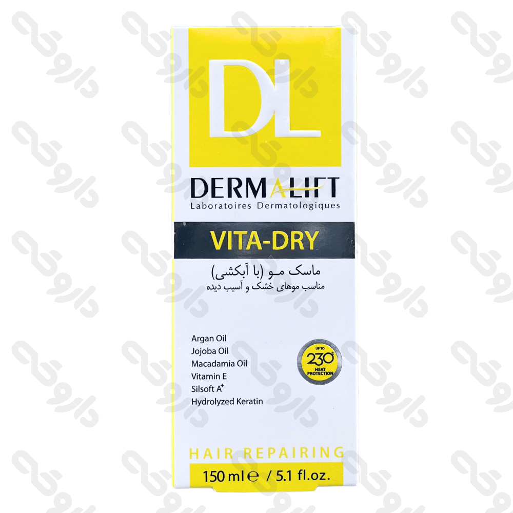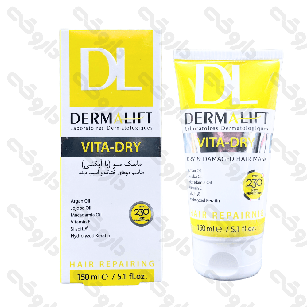 ماسک موهای خشک و آسیب دیده ویتا درای درمالیفت 150 میلی لیتر از مواد تشکیل دهنده متنوعی بدست آمده است و تاثیر بسزایی بر موهای خشک دارد.