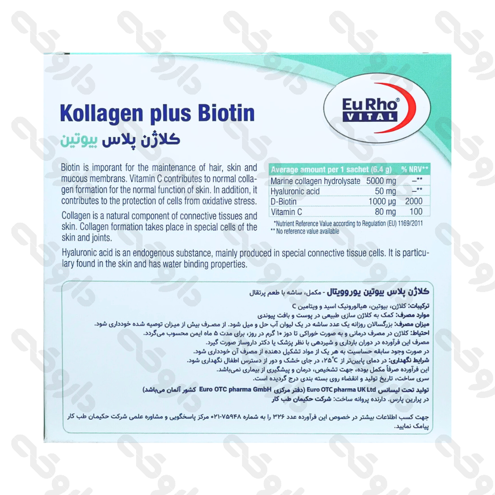 خرید و قیمت ساشه کلاژن پلاس بیوتین یوروویتال ۱۴ عدد از داروخانه آنلاین داروقه