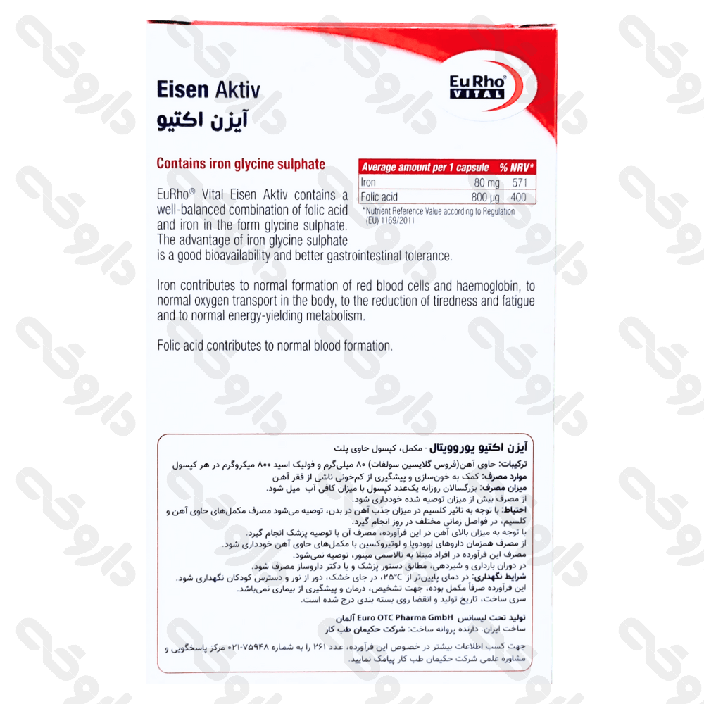 خرید و قیمت کپسول آیزن اکتیو یوروویتال 30 عدد از داروخانه آنلاین داروقه