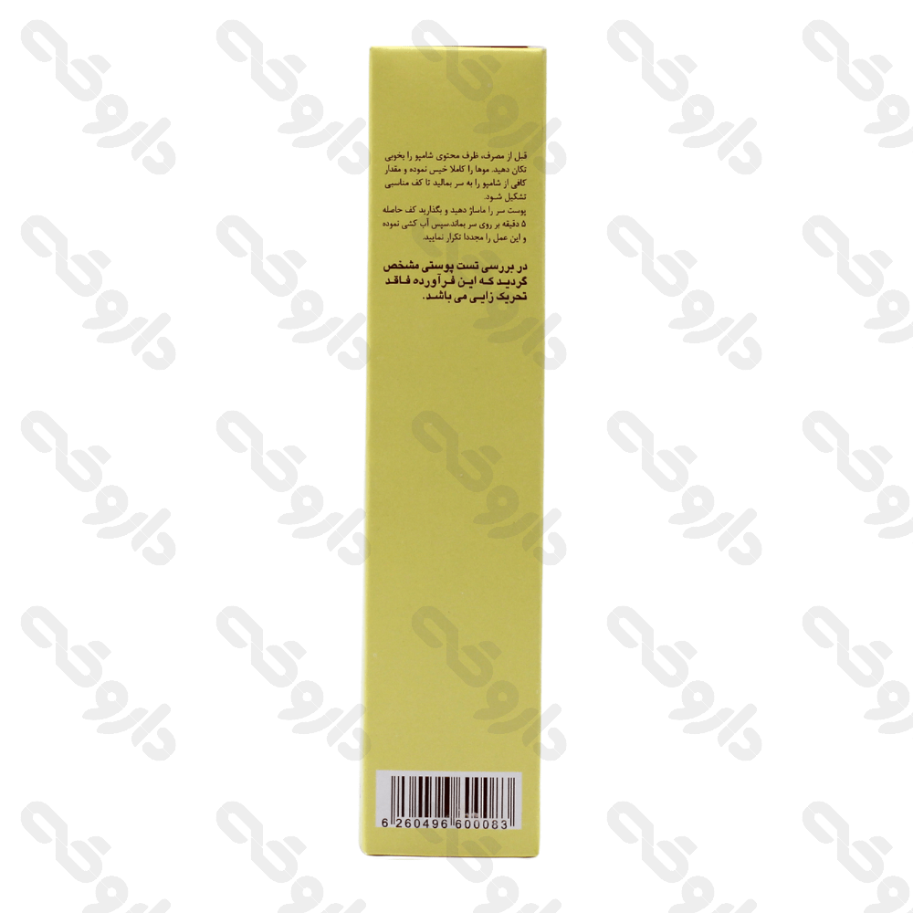 - پوست سر را ماساژ دهید و بگذارید کف حاصله ۵ دقیقه بر روی سر بماند سپس آبکشی نموده و این عمل را مجددا تکرار نمایید.