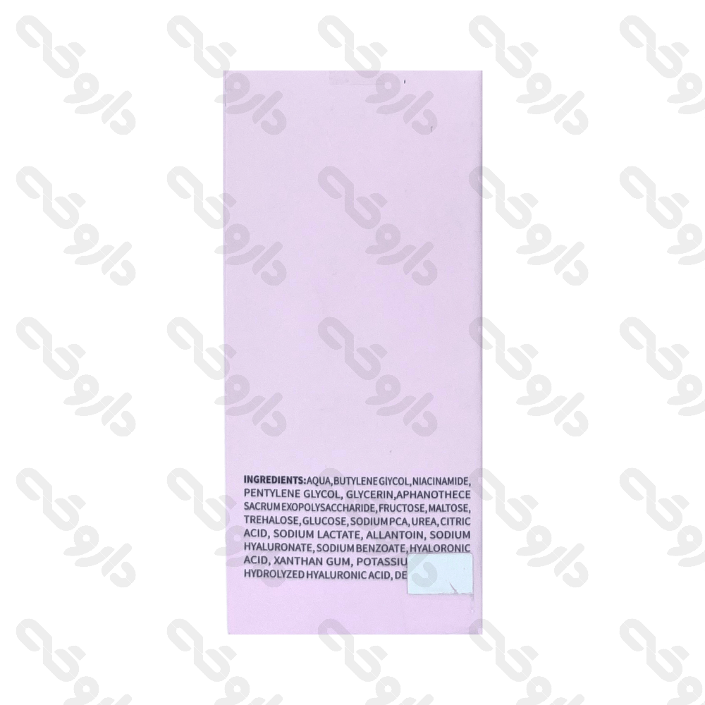 - حاویتری هیالورونیک اسید، ساکران، پروویتامین B۵، نیاسینامید، فاکتورهای مرطوب کننده طبیعی، آلانتوئین