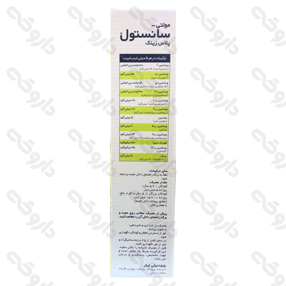 خرید و قیمت شربت مولتی ویتامین پلاس زینک ۱۵۵ میلی لیتر سانستول از داروخانه آنلاین داروقه