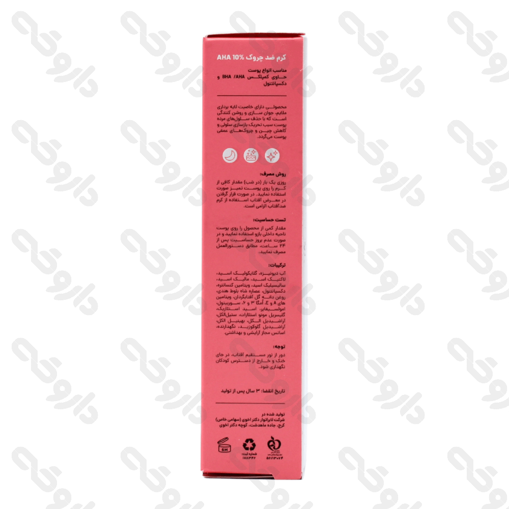- حاوی AHA ۱۰٪، رتینول و ویتامینهای C و E