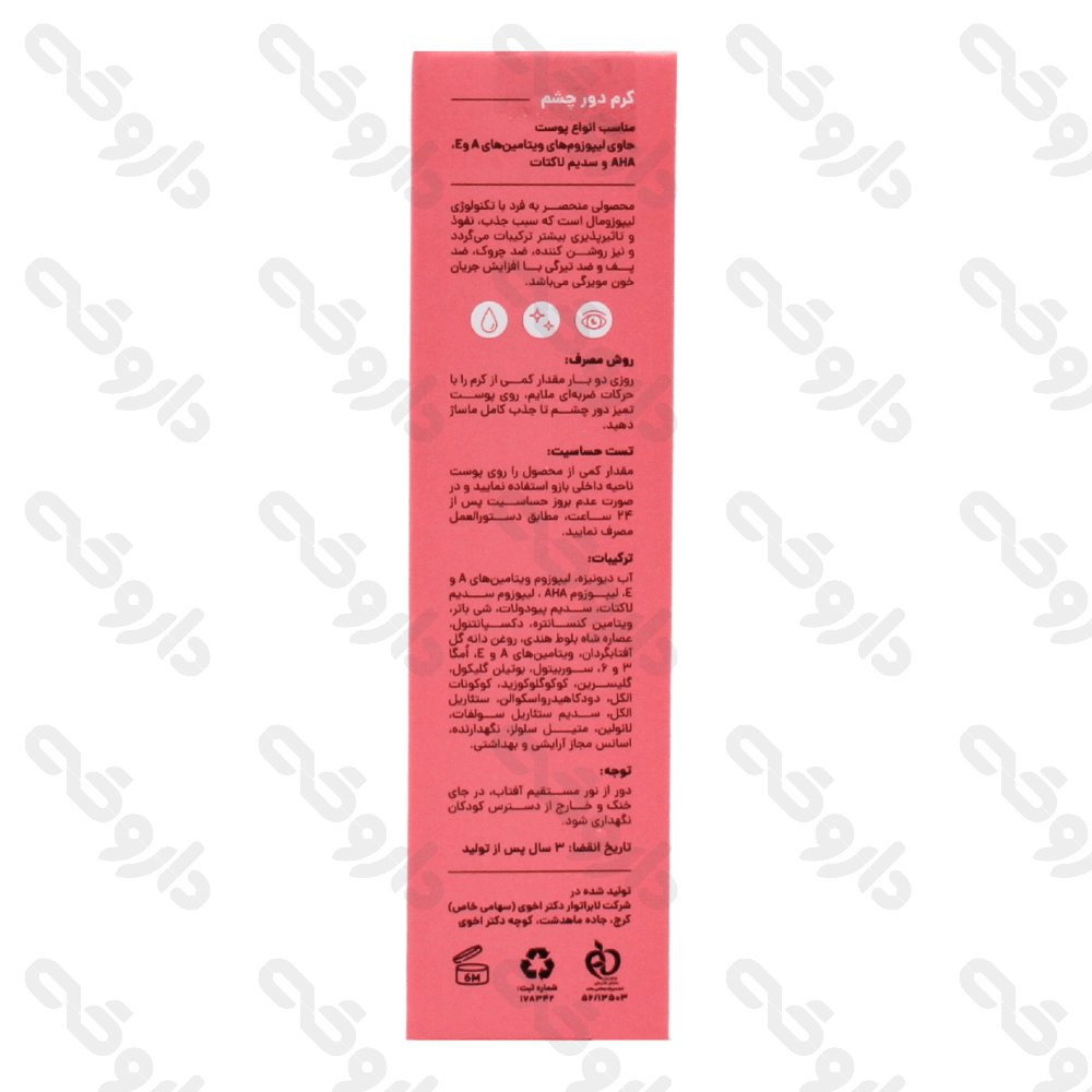 این کرم حاوی مواد روشنکننده و ضد التهاب است که به کاهش تیرگی و پف زیر چشم کمک میکند. استفاده منظم از کرم، باعث کاهش خستگی و افزایش شفافیت و روشنایی پوست دور چشم میشود.